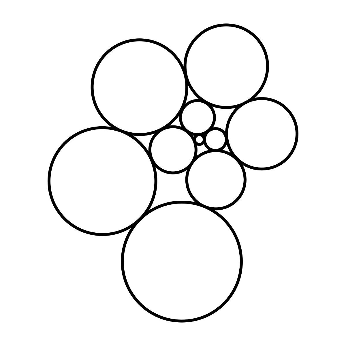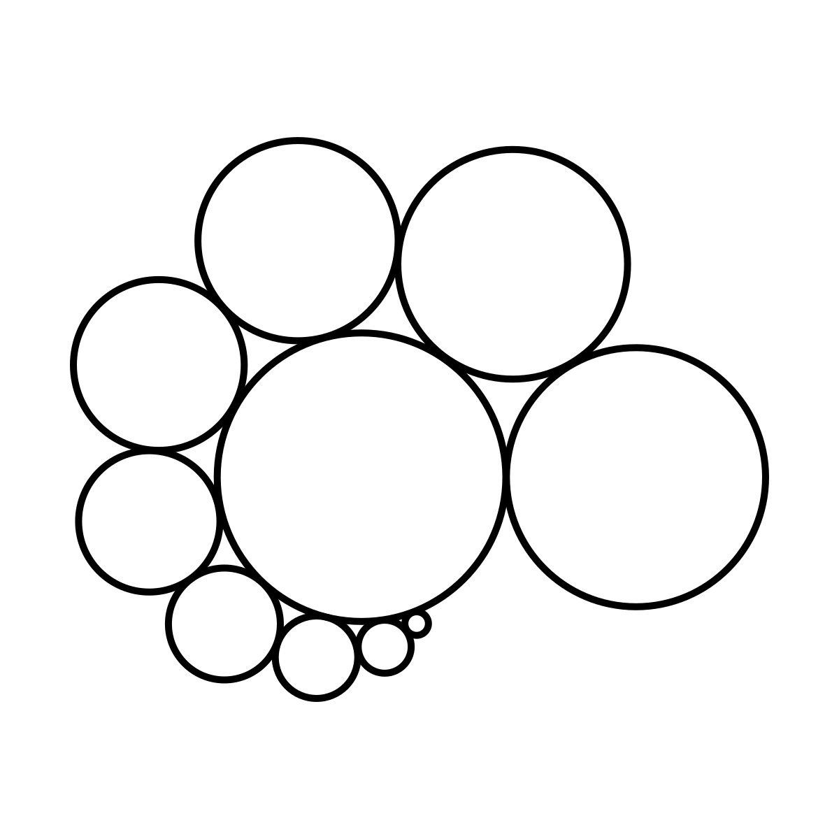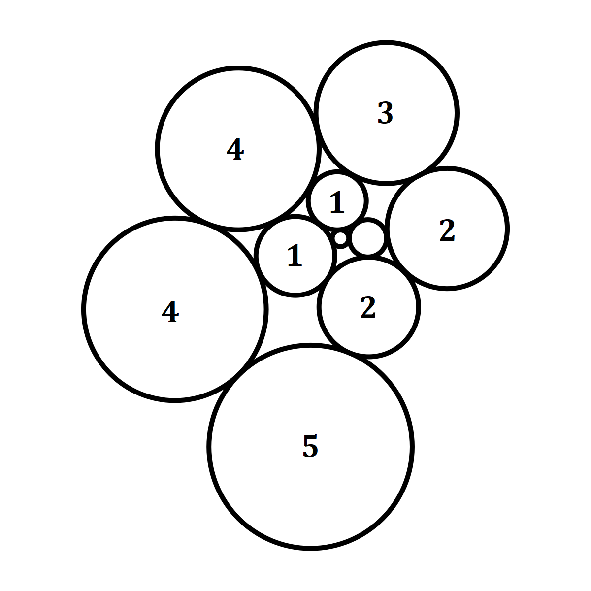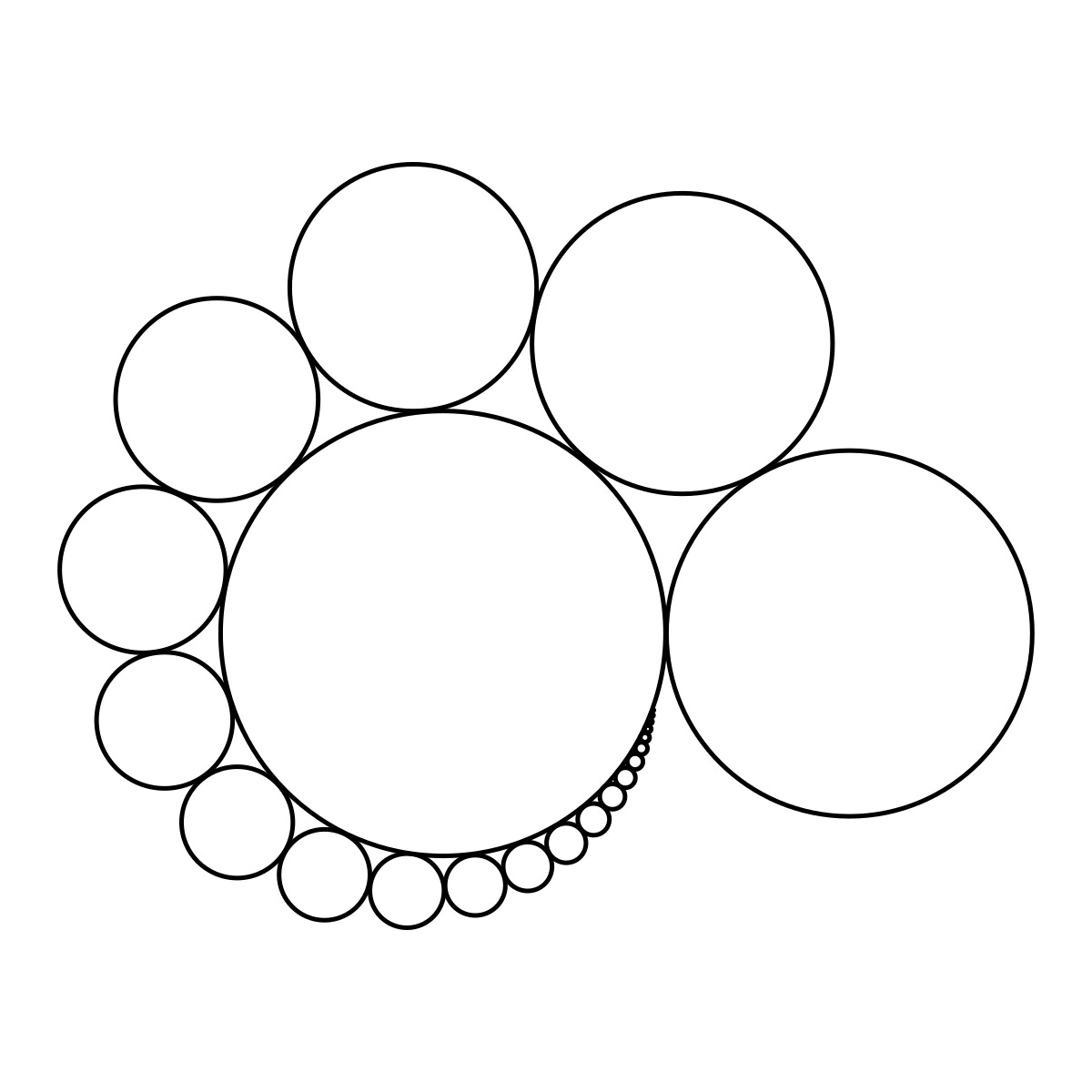 I found this problem space seems vaguely connected to unequal circle packing, maybe the Doyle Spiral, and another mathematical object whose name is so ridiculous I refuse to type it out. As usual, if this is already well-studied with its own 6-word name I didn’t happen to know, tell me so I can sell my computer. As will become clear, I am a recreational mathematician and my formalism is only what I would describe as 6cm dilated.7